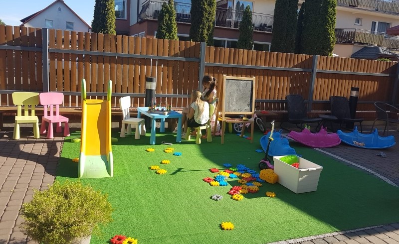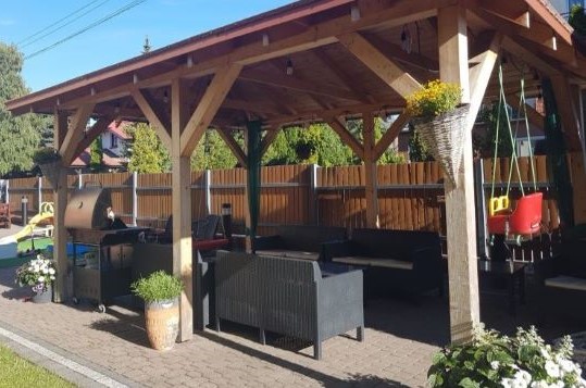 Galeria - widok naszego ośrodka z zewnątrz, basen, altanka z grilem oraz plac zabaw
